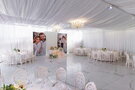 Мечтаете о шикарной загородной свадьбе на природе? Выбирайте роскошный шатер "Ванильное небо"! Красивый остекленный шатер расположен у пирса "Влюбленных сердец" на территории загородного комплекса GREEN HALL UFA.